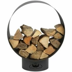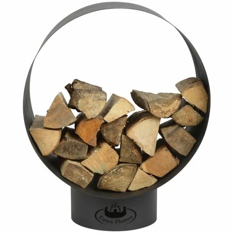 Das Holzregal besteht aus einer runden Basis und einem Stahlkreis, in dem Sie Ihr Brennholz stapeln können.