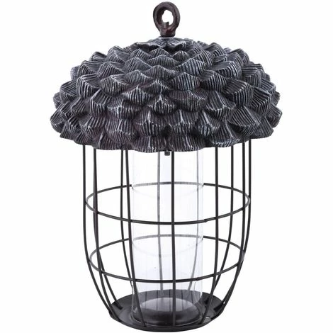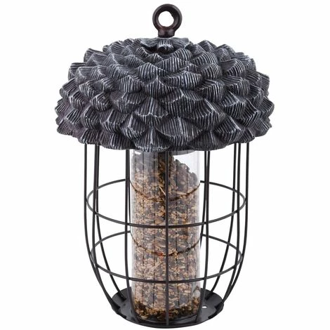 Dieses Futtersilo hat die Form einer Eichel und schützt das Futter vor Eichhörnchen und Witterungseinflüssen.