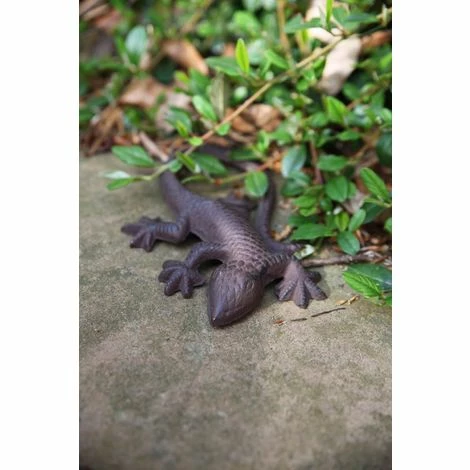 Diese dekorative, gusseiserne Eidechse ist aus einem Stück per Hand nach einer jahrhundertalten Handwerkskunst gegossen.