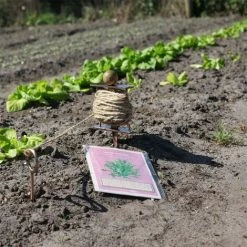 Seit der Antike wird Kupfer wegen seiner besonderen Eigenschaften geschätzt. Die Materialien und besondere Beschichtung dieses traditionellen Gartenwerkzeuges sind so gewählt, dass sie lange und zufriedenstellend ihren Zweck erfüllen. Mit dieser Pflanzschnur lässt sich ein Beet anlegen und die Setzlinge, Pflanzen oder Sträucher in einer geraden Linie pflanzen. Die Juteschnur hat eine Länge von 25 Meter. Der verkupferte Dorn ist flach gefertigt damit er dem Zug besser standhält, und die Schur gespannt werden kann.