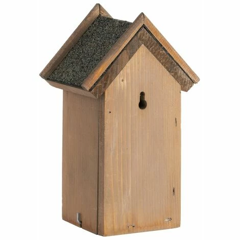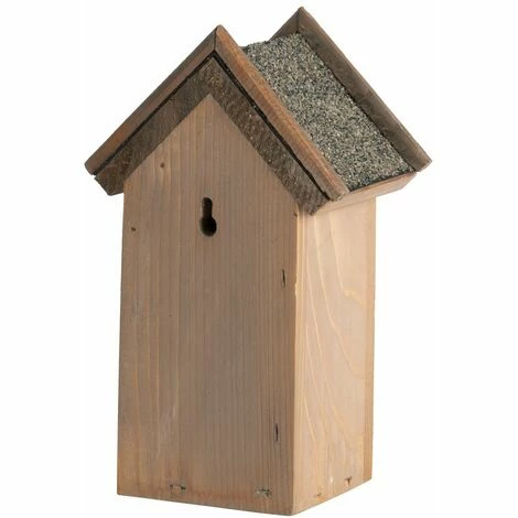 „Dieser maßgeschneiderte Nistkasten mit Bitumendach bietet für Zaunkönige einen idealen Nistplatz und unterstützt aktiv die Arterhaltung.