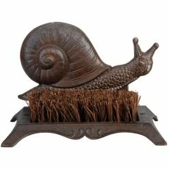 „Gusseiserne Schuhbürste mit Schneckenmotiv in rostbraun.“