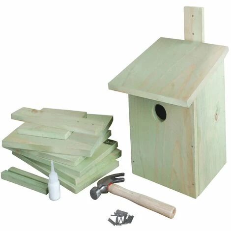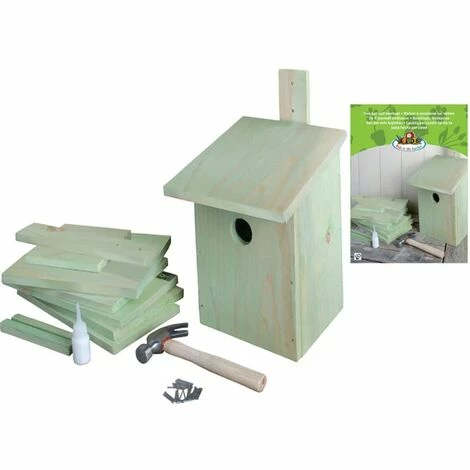 Aus glasiertem Kiefernholz gefertigt, ist dieser Nistkasten langlebig, witterungsbeständig und kann ganzjährig genutzt werden. Dieser Bausatz wird mit allen benötigten Holzteilen, einem Hammer, Nägeln und Leim geliefert. Das fertige Häuschen ist ideal geeignet für Kohlmeise, Blaumeise, Feldsperling und Co. Für Kinder ist es tolles Geschenk, das sie spielerisch an heimische Vögel und andere Naturthemen heranführt. Dabei können sie ihrer Kreativität freien Lauf lassen und dem Häuschen eine individuelle Note verleihen – das sorgt für jede Menge Spaß.