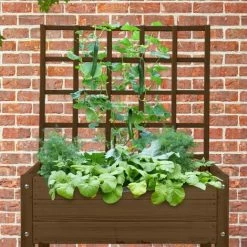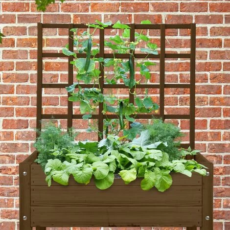 Dieses kleine braune Hochbeet-Rankgitter von Esschert Design bietet GemĂŒse- und Obstpflanzen eine gute UnterstĂŒtzung.