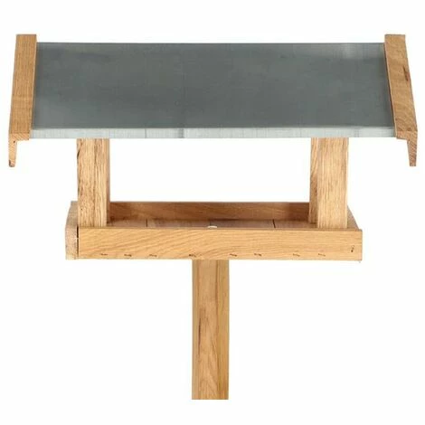 Das VogelhĂ€uschen besitzt ein Silo und offene Seiten, sodass Vögel das Futter immer leicht erreichen können. Das rechteckige Stahldach bietet ausreichenden Schutz vor oberen Gefahren und hĂ€lt das Futter trocken. Aus natĂŒrlichem Eichenholz gefertigt, ist das Vogel-Futterhaus langlebig. Mit diesem FutterhĂ€uschen bieten Sie Futter auf stilvolle Weise an und haben auĂerdem einen Hingucker in Ihrem Garten. Hier kann man dicke Meisenknödel oder ErdnĂŒsse aufhĂ€ngen, von denen einige Vogelarten gerne Samen und Kerne herauspicken.