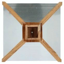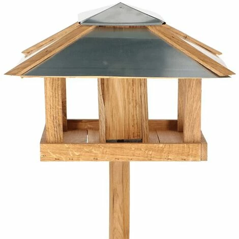 Das Vogelhäuschen besitzt ein Silo und offene Seiten, sodass Vögel das Futter immer leicht erreichen können. Das quadratische Stahldach bietet ausreichenden Schutz vor oberen Gefahren und hält das Futter trocken. Aus natürlichem Eichenholz gefertigt, ist das Vogel-Futterhaus langlebig. Mit diesem Futterhäuschen bieten Sie Futter auf stilvolle Weise an und haben außerdem einen Hingucker in Ihrem Garten. Hier kann man dicke Meisenknödel oder Erdnüsse aufhängen, von denen einige Vogelarten gerne Samen und Kerne herauspicken.